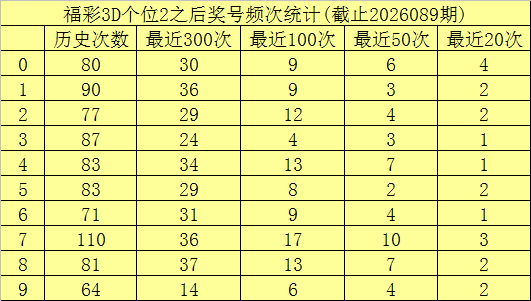 开奖回顾:福彩3D第2026089期奖号为922,奖号类型开出:组三、大小小、奇偶偶,和值为13。 百位杀号:上期百位开出号码9,历史上百位号码9已开出829次了,最近100次百位号码9出现之后,其下期各号码频次分别为:号码5、4出现15次,2、8出现11次,0、7出现10次,1出现9次,6出现7次,3、9出现6次。 前三次百位号码9出现之后,其下期奖号分别开出:4、5、6,出现在:高频区域、高频区域、低频区域,本期百位放弃低频区域号码,排除5码:13679。 十位杀号:上期十位奖号为2,历史...